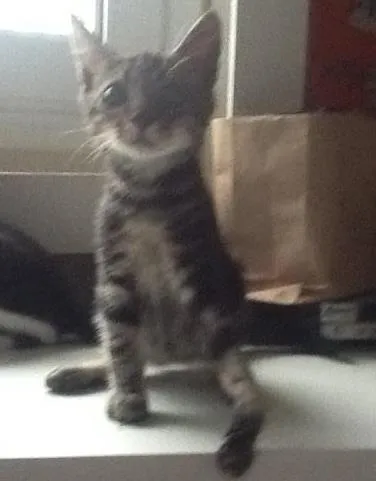 Esse gatinho tem uma deficiencia na patinha dianteira, mas consegue viver bem embora mancando. È super tranquilo e carinhoso. Circula pouco em razao da deficiencia