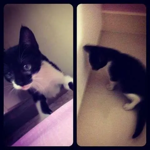 Filhote encontrado na Av. Dom João VI a ponto de ser atropelado por um ônibus. Está sob minha guarda mas, infelizmente não poderei ficar com ele pois crio dois cães que não se adaptam a convivência com gatos. Está banhado e alimentado, é muito brincalhão, dócil e muito carinhoso.