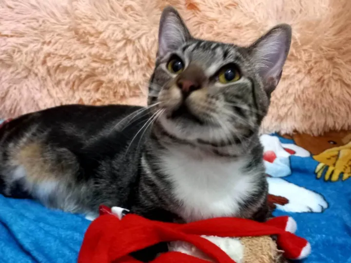 Conheça o Yude, um adorável gato da raça Exótico, com uma pelagem rajada única que certamente chamará sua atenção. Com idade entre 7 a 11 meses, ele está na fase perfeita para encontrar um lar cheio de amor. Seu porte médio é ideal tanto para casas quanto para apartamentos, onde ele se adapta perfeitamente.