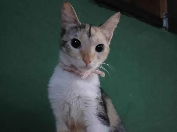 Gata pintada, vista a ultima vez no campo de futebol da nova Brasília de Valéria, para vacinação. Fugiu assustada, não tem costume de sair de casa. Ela é assustada, provavelmente vai fugir se tentar pegar. Mas não recusa comida. Pode entrar em contato comigo se a ver.