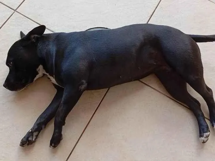 Cachorra dócil, muito sociável e dependente. Nunca saiu para rua sozinha e deve estar perdida sentindo nossa falta, com sede e fome. É preta. Muitos acham que ela é Pitbull mas sua raça é "American staffordshire terrier". É preta com uma mancha branca no peito e um alista fina preta no centro da cabeça.