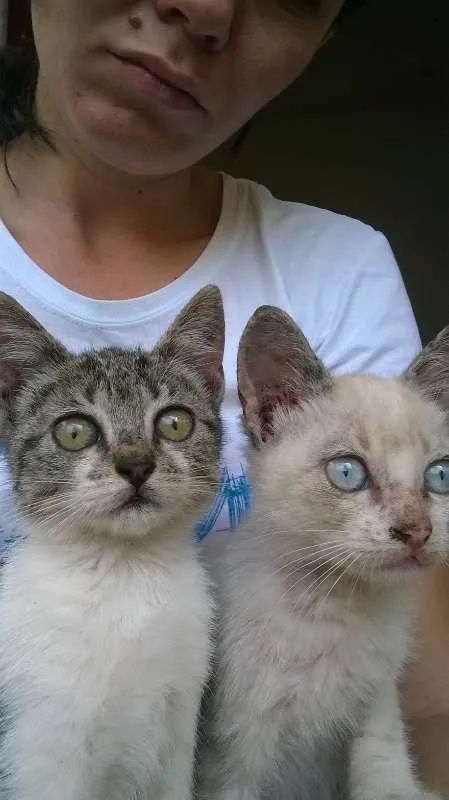 Estou com dois gatinhos que foram abandonados no meu trabalho. Tenho fotos deles.