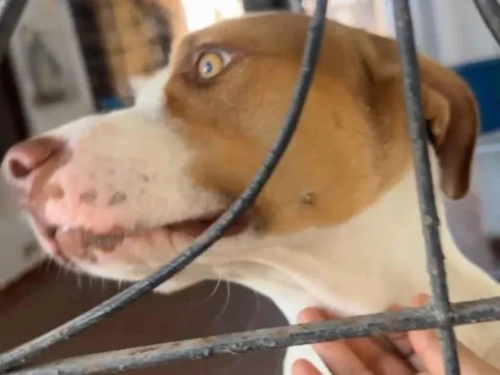 Cão muito lindo de médio porte, raça misturada de Dogo Argentinho (pai) e vira lata (mãe). O motivo da doação é que irei me mudar para um apto muito pequeno, e não tenho com quem deixa. Ele é bem danado, precisa de espaço para gastar a energia, dócil.