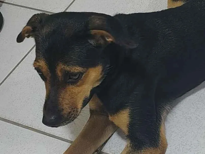 Ele foi abandonado na rua por um homem de bicicleta em frente ao meu condomínio durante a noite e estava chovendo muito.Ele estava assustado e chorando.É muito dócil e medroso.