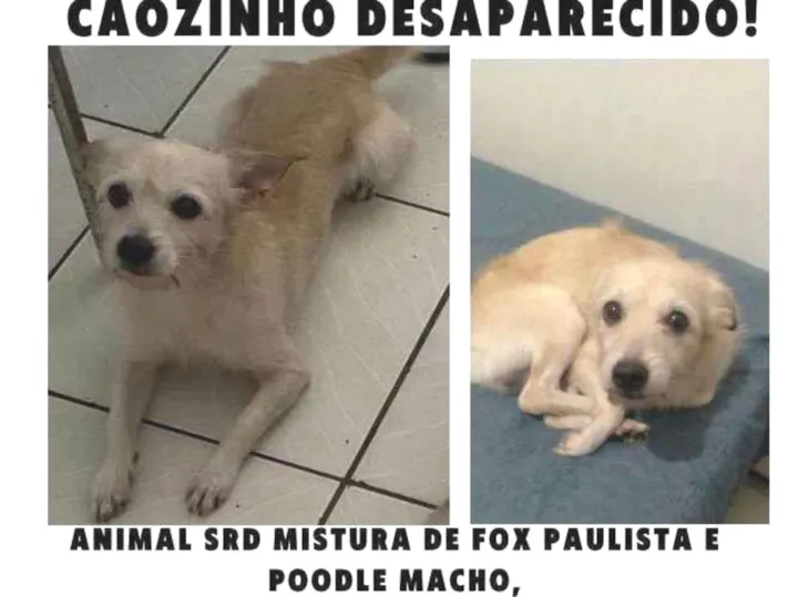 Estou dando recompensa a quem encontrar, meu cachorro atende por nome de Otto, é pequeno pelagem branca com amarelo, não é de raça, mas é muito amado, 500 reais para quem nos trouxer de volta.