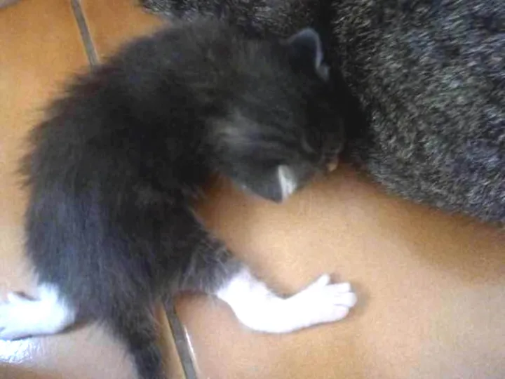 Uma gatinha deu a luz aqui no meu prédio, infelizmente não poderei ficar com os gatos.