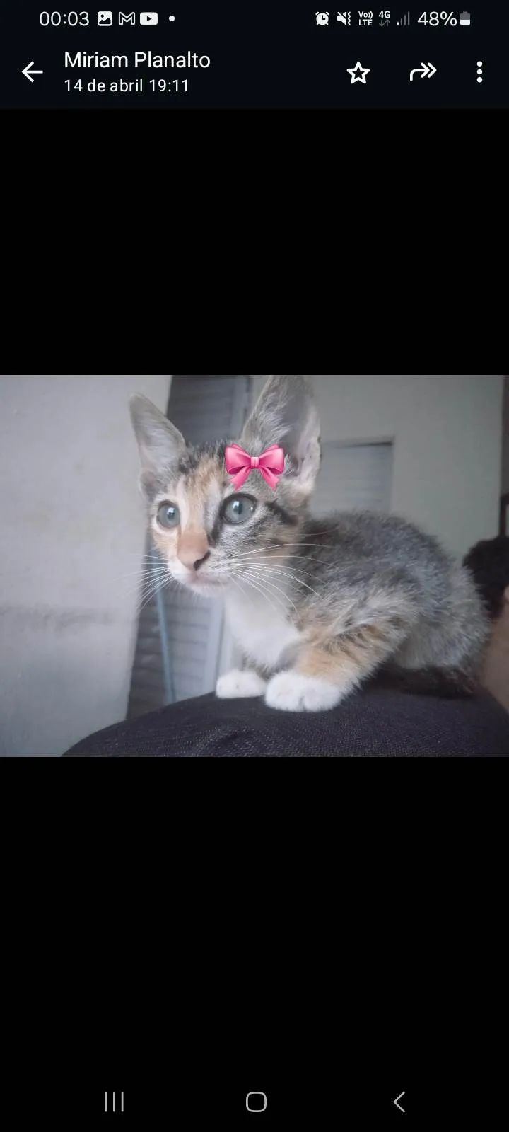Olhos verdes,vermifugada, muito dócil, usa cx de areia, come ração