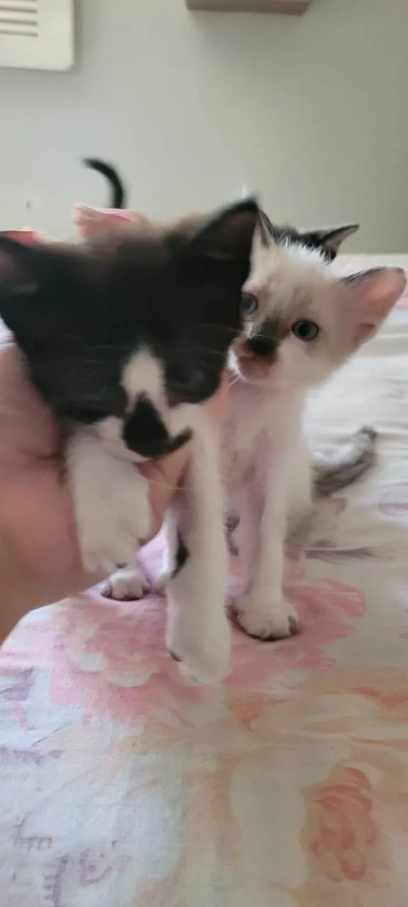 Procurando um novo membro para sua família? Conheça esse lindo gatinho SRD Vira-Lata de pelagem branca e preta, com menos de 2 meses de idade e porte pequeno. Ele já está vermifugado e pronto para encontrar um novo lar.