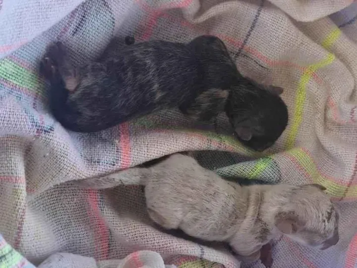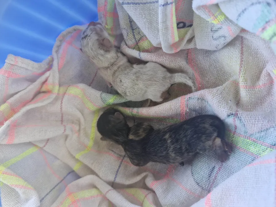 Dois gatinhos recém nascidos, abandonado em frente à casa de meu filho.