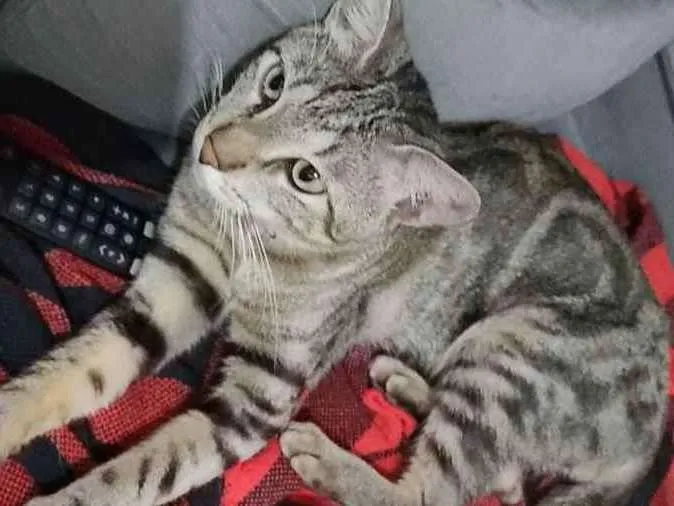 Gato aparentemente tem dono, algumas pessoas disseram se trará de gato begal por sua pelagem. Muito dócil, mão era castrado, casarei ele já. Tem todo jeito de gato que foi criado em cDa, estava muito magro e mirava muito.