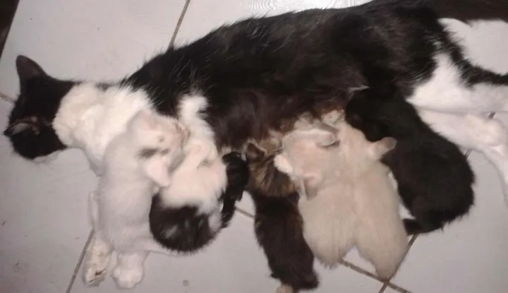 Esta fêmea está na rua e já tenho 7 gatos. Moro numa casa de 4 vãos. É impossível ficar com ela. Ajudem-me, Por favor. Essa fêmea teve 6 gatinhos. Tô arrancando meus cabelos...