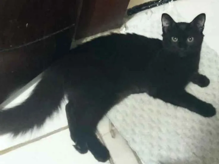 Gato preto com rabo bem peludo e olhos verdes, possui a pelagem flocada, atende pelo nome de Badu; adulto com dois anos de idade, é dócil mas é tímido tem muito medo de gente prefere fugir e se esconder. Ele sofre de uma doença autoimune e precisa fazer exames de sangue e tomar medicações para controle da doença. Favor quem encontrar ou estiver de posse desse gato, entrar em contato pelo Whatsapp (85)98131.9332, falar com Vileine.