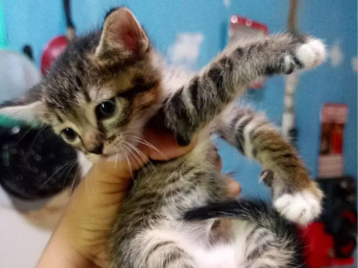 Olá, amigos! Preciso da ajuda de vocês para encontrar um lar para minha pequena Nala, uma adorável gatinha da raça SRD-ViraLata que está com apenas 1 mês e alguns dias. Ela é uma bolinha de amor, com pelagem rajada e porte médio.