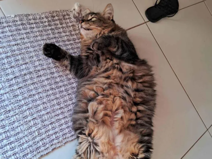 Gatinha dócil com patas e cauda curtinhas