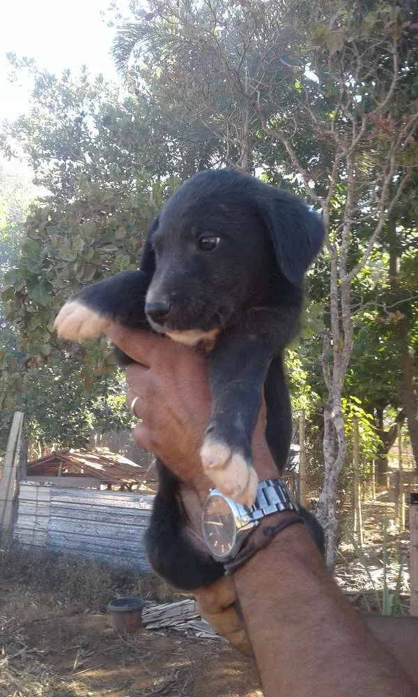 Doamos filhotes sem raça definida de médio porte. Há três fêmeas e dois machos. Eles têm 5 semanas de nascidos e moram em uma chácara junto com a mãe por hora.