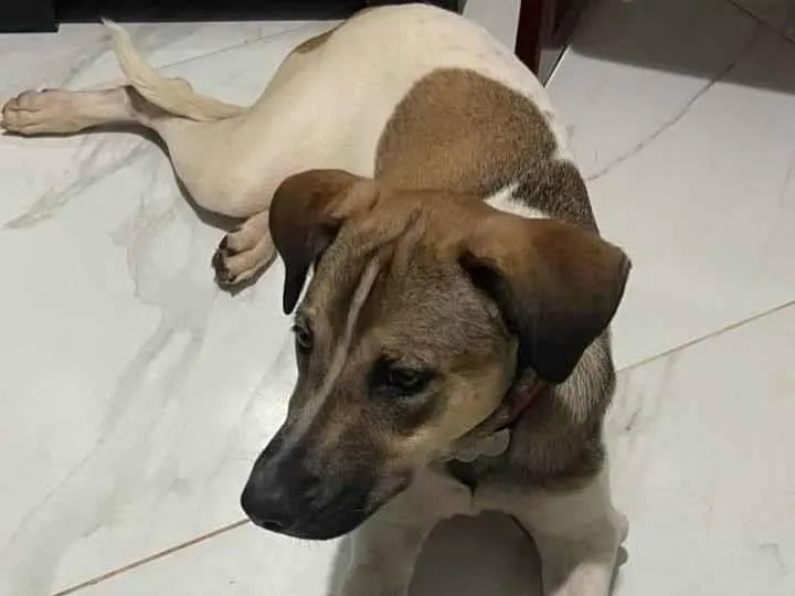 Cadela super amorosa, foi resgata das ruas com a pata direita da frente quebrada, infelizmente o osso já havia colado, então ela manca um pouco, porém precisa de longos passeios para gastar energia. Já foi vacinada e castrada.
