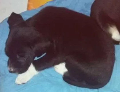 Fêmea de pelagem preta com patas brancas. São filhotes saudáveis, espertos e adoráveis mas infelizmente não posso ficar com eles.