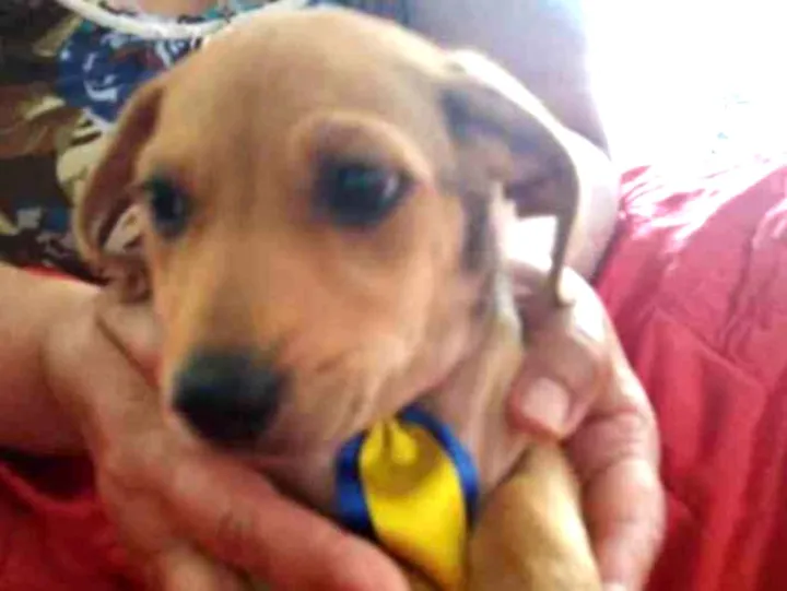Lindo Duke de dois meses, porte pequeno. Muito dócil e brincalhão. Para adoção responsável. Contato: 99356-6784.