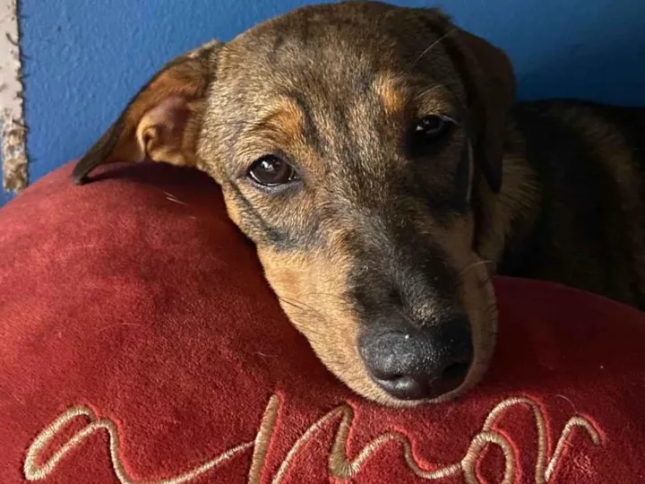 Conheça Larika, uma adorável cadelinha SRD de pelagem caramelada, com apenas 5 meses e porte pequeno. Esta fofura está pronta para encontrar um lar cheio de carinho!