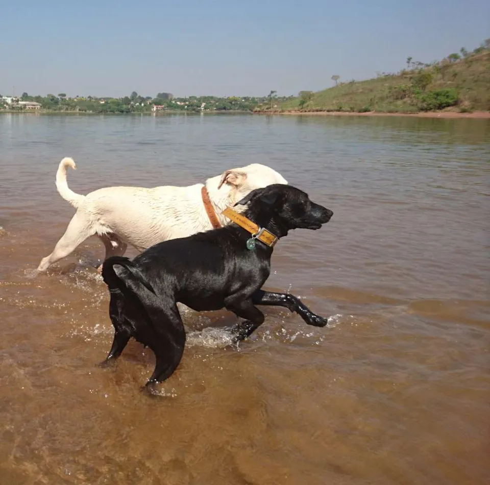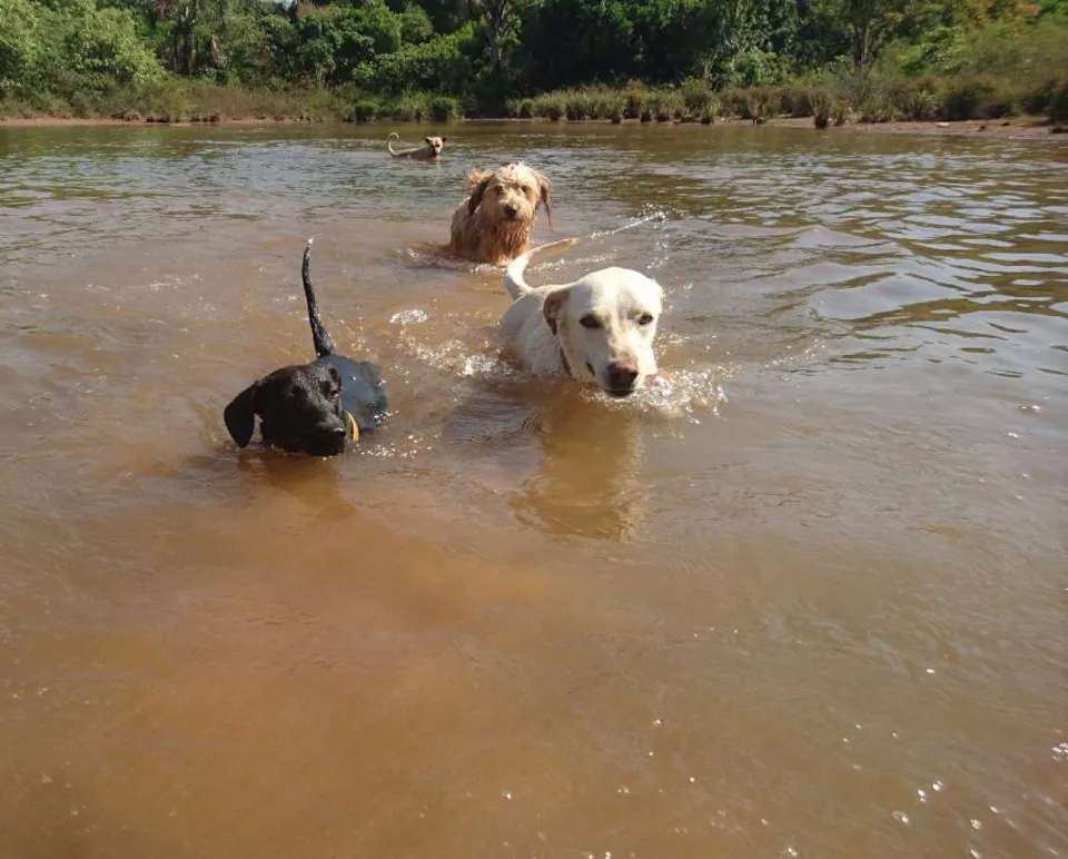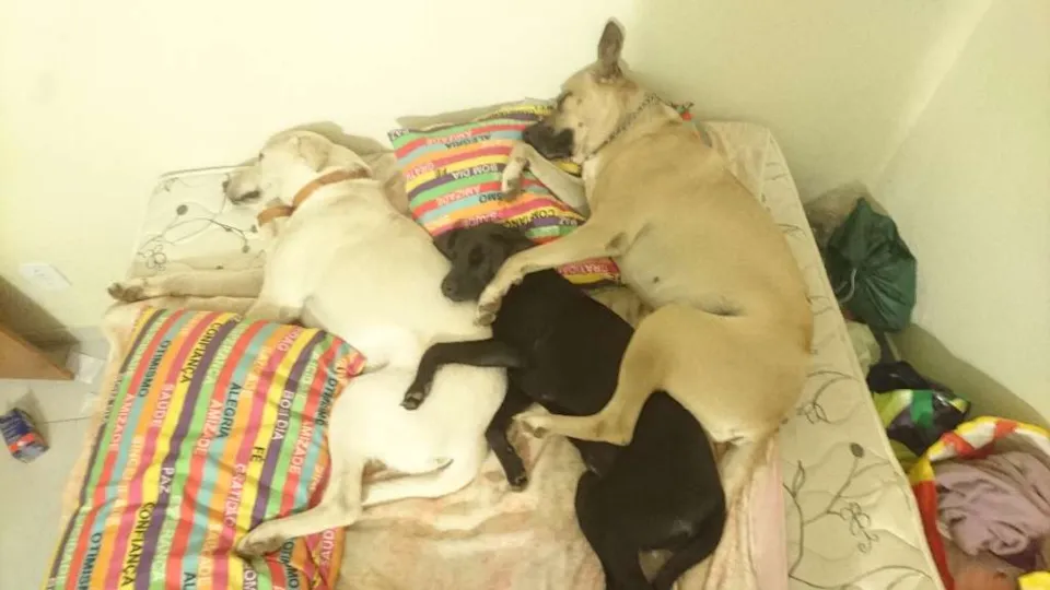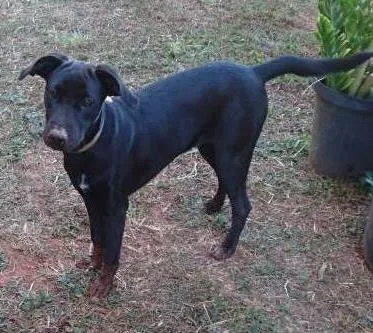 Muito boazinha, resgatei a um mês atrás. Negativa para todas as doenças já tem as duas primeiras vacinas. Quando a resgatei ainda tinha os caninos de leite. Por isso estimamos a idade entre 5 e6 meses. Vive aqui com meus gatos. São súpera amigos, mas acho que ela seria mais feliz com alguém da espécie. Brincalhona, adora passear de carro, se dá bem com outros cachorros e crianças. Vai ficar de porte médio. ideal para uma casa. Não late, e já passei alguns comandos básicos de adestramento para ela. Muito espertinha. Uma pena não poder ficar.