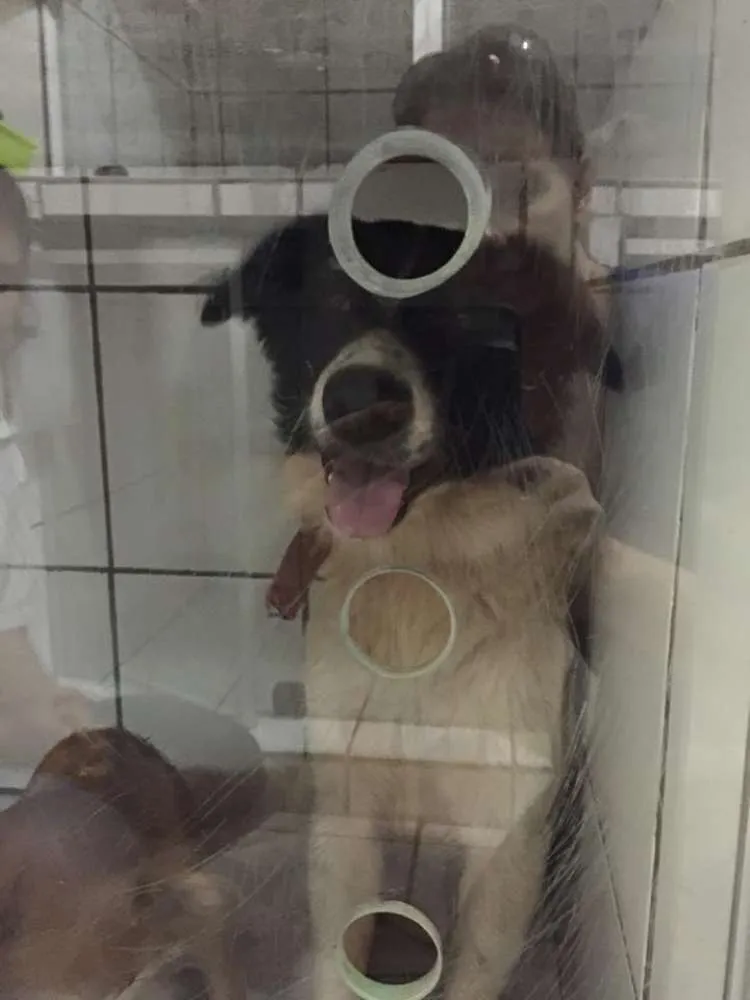 Border de 3 anos, fêmea e porte de médio a grande. Foi abandonada junto com o Jorginho, cachorrinho que está com ela na foto. Ideal que seja adoção conjunta, pois são inseparáveis. Estão numa clínica que os acolheu aguardando um lar temporário ou definitivo. Ajuda com as despesas para quem quiser acolher.