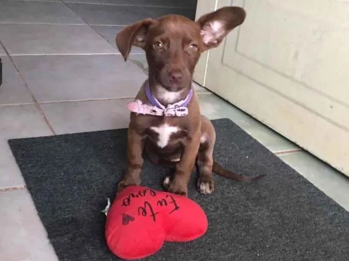 Cachorra vacinada, porte médio, pelos marrons bem cuidados, saudável e bem brincalhona. Estou doando porque minha residência e pequena e não é possível deixar ela livre o quanto merece.