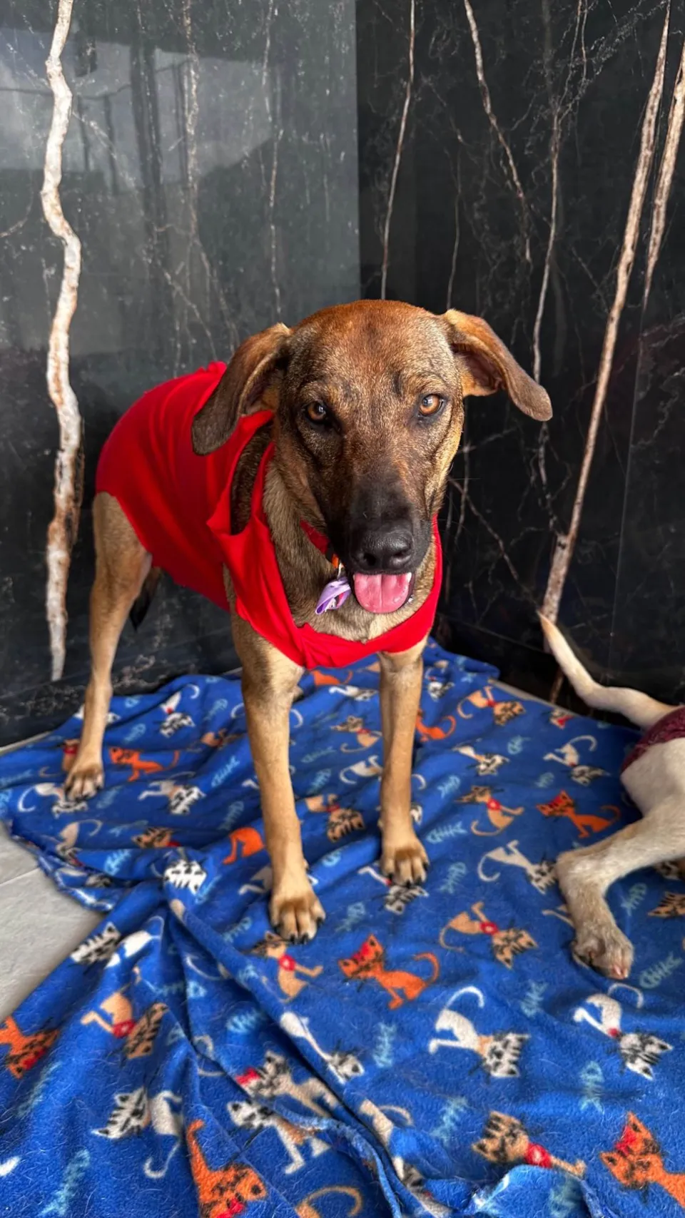Ela foi resgatada após ter sido abandonada nas ruas. É um pouco medrosa, porém dócil e sociável.