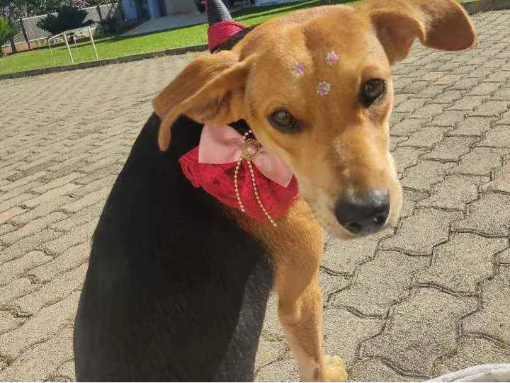 Cadelinha fêmea de aproximadamente 1 ano, foi encontrada no portão de casa e agora precisa de uma adoção responsável. É extremamente carinhosa e brincalhona, se dá bem com crianças e outros animais. Está vacinada e vermifugada.