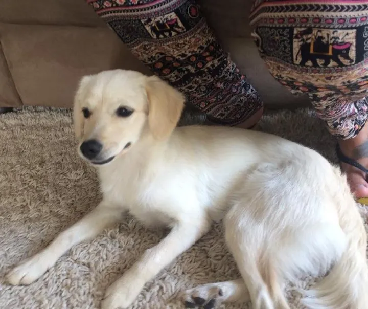 Encontrei ela na rua com fome, trouxe dei ração, mas estou para ganhar bebê e não posso ficar com ela além de eu morar em apartamento, ela é bem dócil, branca, tem uns 7 meses.