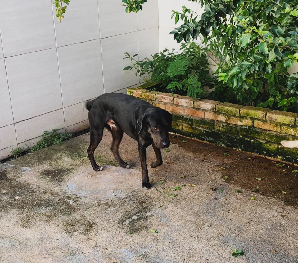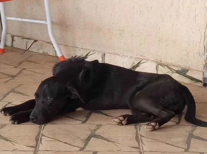 Dócil, mas atento e corajoso. Mistura de labrador com uma SRD (com Boxer na mistura). Não castrado!