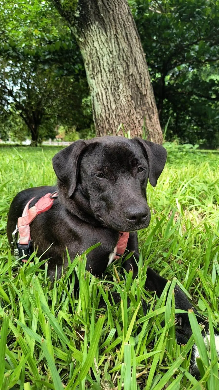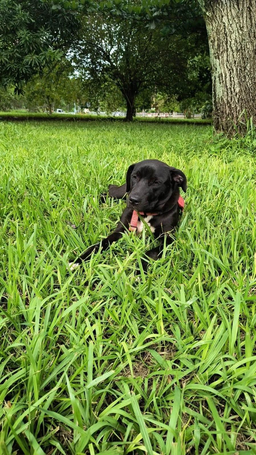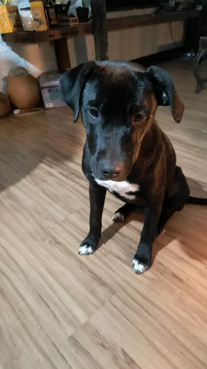 Foi abandonada mas é muito dócil. Gosta de ficar pertinho das pessoas e dentro de casa. Parceira para passeios na guia ou de carro. Só tem tamanho...super companheira.