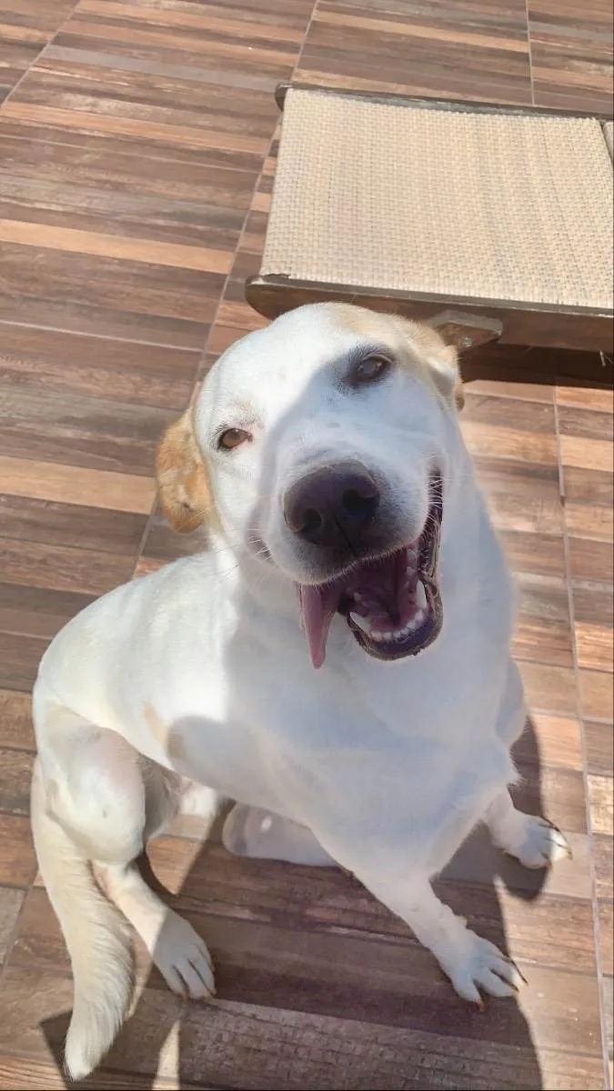 Cachorra muito dócil, meiga, adora carinho e tomar sol, e se dá muito bem com outras pessoas, crianças e animais, como todo ser só precisa de acostumar. Castrada, gosta de passear mas tem medo. Não sabe andar sozinha na rua. Precisa de lar amoroso e paciente, pois ainda gosta de brincar. Mas é bem na dela a maior parte do tempo. E bastante espaço. Protetora de casa.