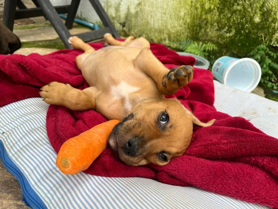 Ele nasceu na rua junto com suas irmãs. Infelizmente, alguns dos filhotes não resistiram: dois foram atropelados e um morreu de frio. Para que essa história tivesse um final diferente, ele e as irmãs foram resgatados — e agora ele só precisa de uma coisa: uma família.✨ Sobre ele: