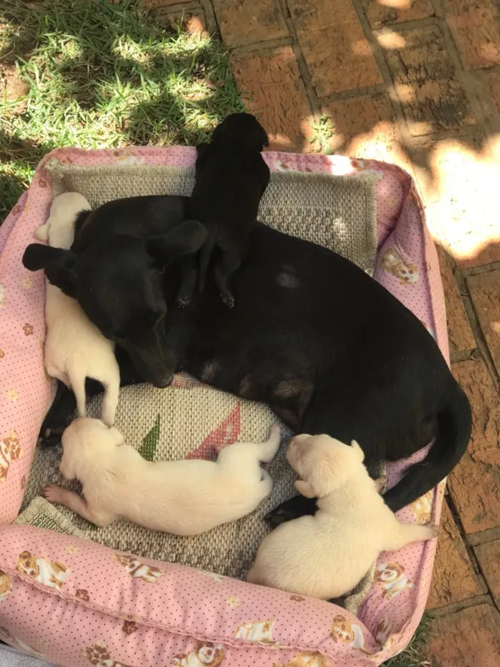 É uma cadelinha que eu mesma fiz o resgate de dentro de um buraco cheio de ratos os filhotinhos corriam o risco de serem comidos vivos o resgate foi na biblioteca do riacho fundo l a mãe e os filhotinhos se encontram no Mangueiral na casa de uma amiga mais ela não pode mais ficar com eles foi só como lar temporário porque corria risco na rua