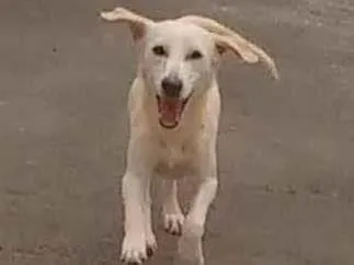 Cão pequeno abandonado e estava com barbantes amarrados no pescoço.