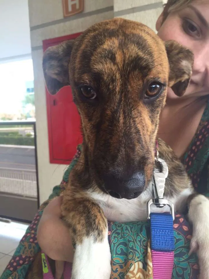 O Tigrão foi resgatado por mim em Valparaíso, vítima de maus tratos. É um cachorro muito dócil e carinhoso. Já providenciei todo o tratamento médico e as vacinas. Ele merece muito um lar cheio de amor