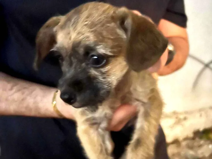CADELA ENCONTRADA PERDIDA NA CHUVA COM RISCO DE ATROPELAMENTO. MUITO DÓCIL E FILHOTE