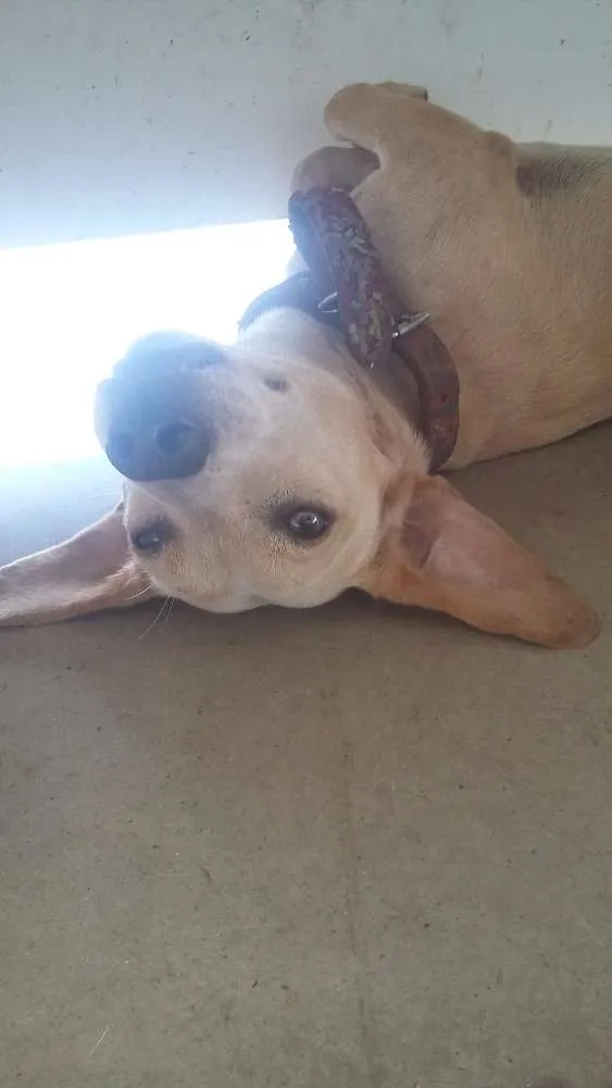 O cão apareceu no dia 07/04/2016 na loja "Estação Fiat - cidade do automóvel", os funcionários o acolheu com carinho, água e comida. Mas o cão não pode ficar na loja, então estamos a procura do dono. O cão possui uma coleira de pescoço vermelha com estrelas. É dócil,carente e amedrontado. Tem pelagem clara, loiro por todo o corpo, estatura pequeno-médio. Ele não está apresentando mal cheiro, apenas uma machucadinho na perna. Por isso, acreditamos que ele tenha perdido o caminho de casa há pouco tempo.