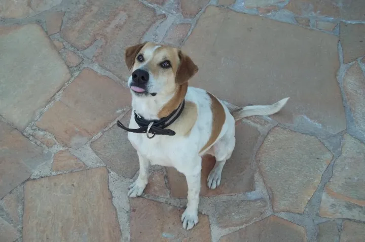 Informações adicionais: Vira-lata branco com manchas de dois tons de marrom; focinho preto; porte médio; assemelha-se até certo ponto à raça beagle; muito veloz e, quando visto pela última vez, estava com uma coleira com uma faixa bege entre duas de cor preta. É importante notar que, como qualquer cachorro, ele pode tornar-se agressivo se for surpreendido. Se encontrá-lo, eis as formas de contato: