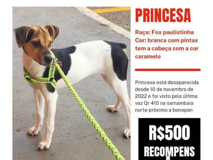 Fox paulistinha chamada Princesa fugiu de casa na QR 410 DE SAMAMBAIA NORTE. Estamos desesperados. Nos ajude Rômulo 61 981286248