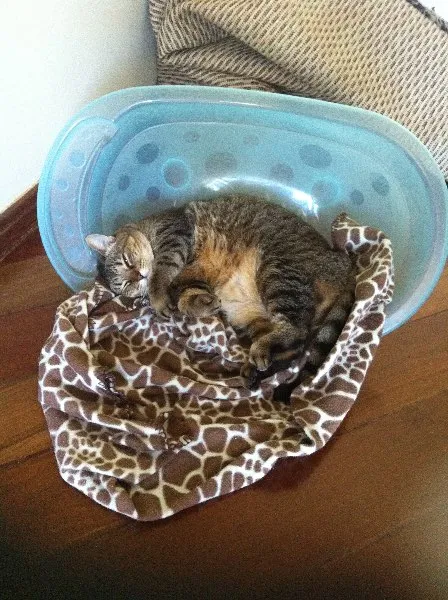 A gata foi adotada no dia 24 de dezembro de 2013. Ela vivia em um espaço limitado, na casa de um casal de idosos, apresentava quadro de maus tratos e já não era vacinada há muito tempo. Após estar conosco, levamos ao veterinário. Ela precisou fazer um curativo na glândula adanal e ser submetida à uma dieta adequada. Hoje, ela é totalmente saudável.