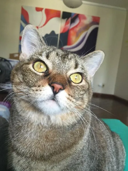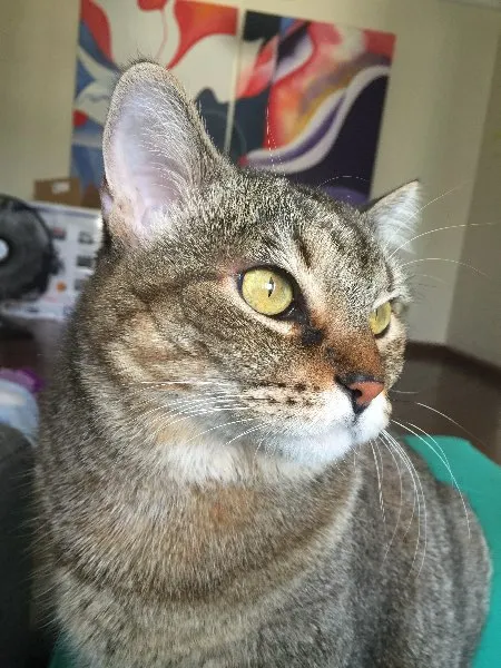 É mansa e gosta muito de ficar perto das pessoas. Nosso lar era temporário, mas nunca encontramos um dono e ela acabou ficando conosco até hoje (quase 2 anos). Apesar de ser bem tratada, tomar banhos regulares, ser vacinada e visitar a veterinária com frequência, não recebe o amor que merece. Os donos são alérgicos e não podem chamegar demais a felina.