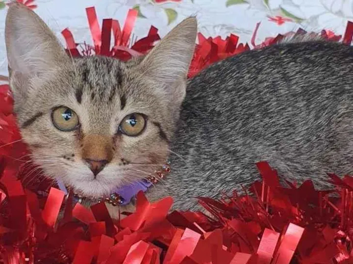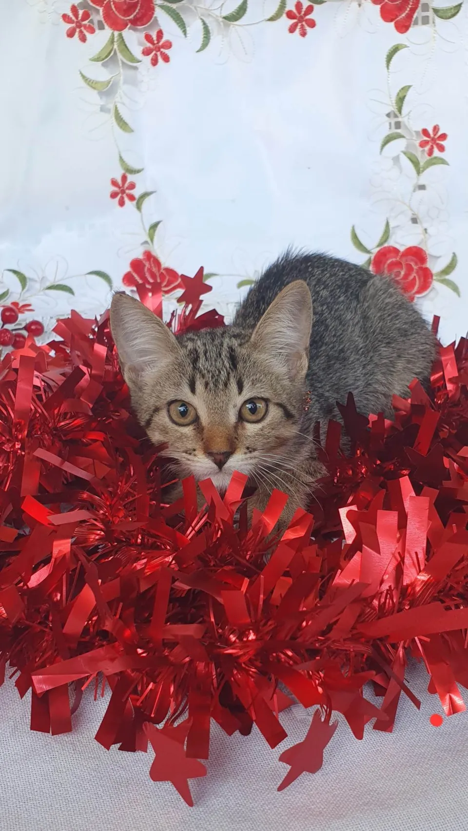 Adote Arya, uma gatinha de 3 meses, vacinada e vermifugada. Apesar de ser FELV positiva, ela é cheia de amor e esperança. Dê a ela um lar especial.