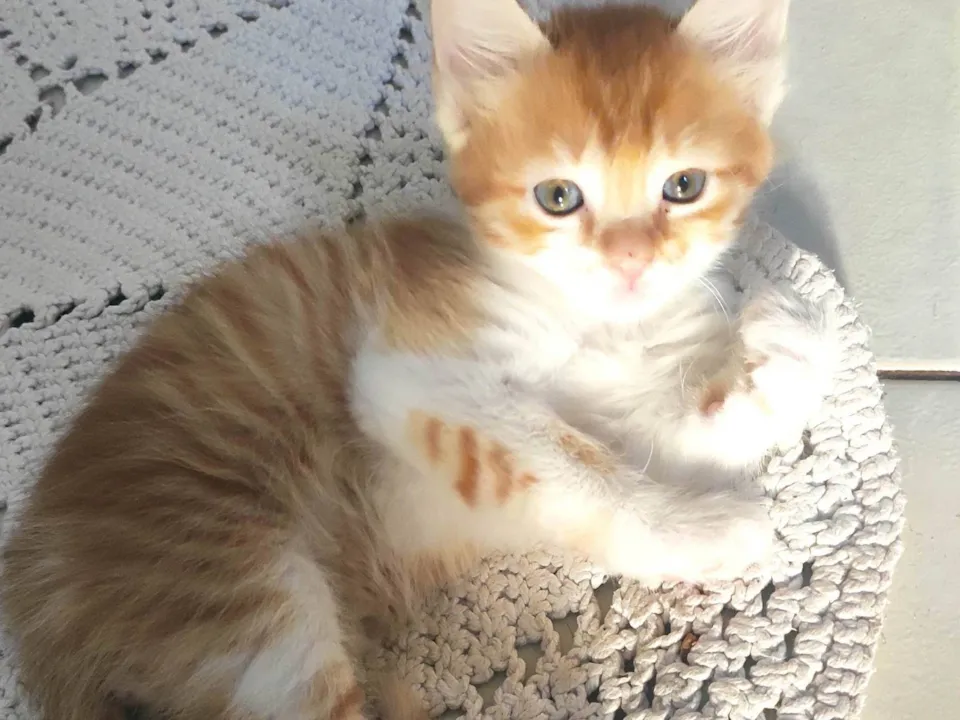 Macho, 40 dias, já está comendo ração e usando areia