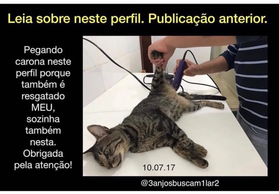 Em 2015, me aproximei deste gato e de outro, eram muito medrosos, sempre junto c/ ele, no telhado de minha casa e soube o idoso que faleceu havia pedido e confiado na família para protegê-los.