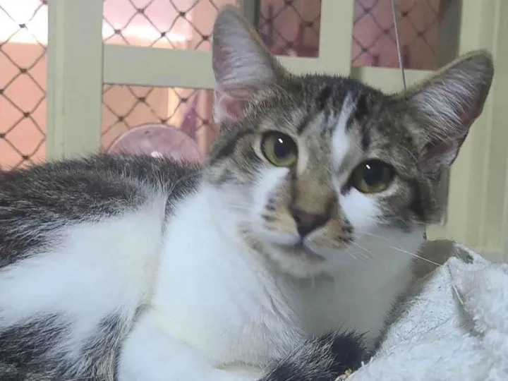 Gatinha Frida srd de 5 meses, vacinada (2 doses), vermifugada, castração garantida, testada negativa fiv/ felv. Carinhosa, sociável, usa a caixa de areia, está acostumada com outros gatos. Está em lar temporário.