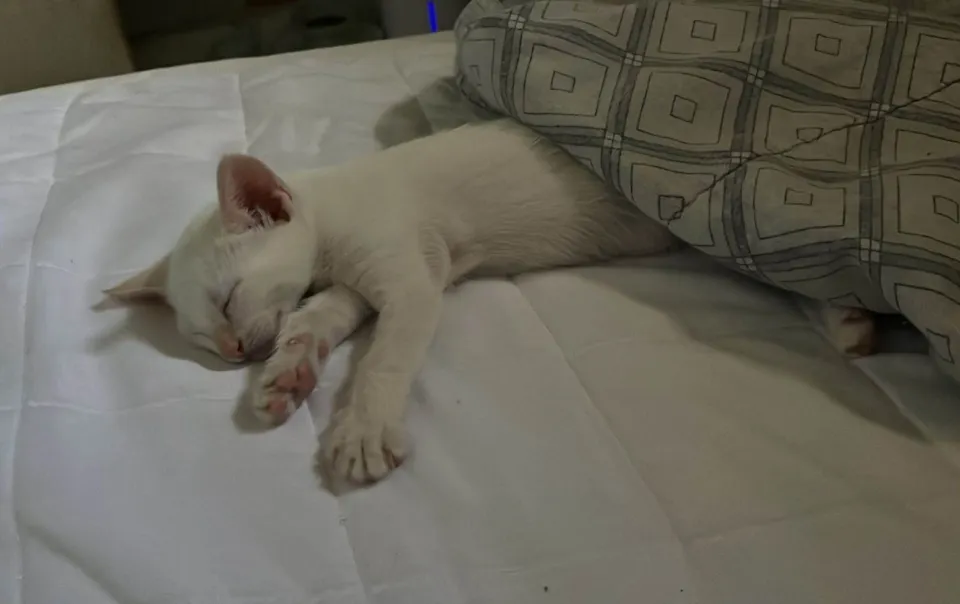 A história de Gatinho branco - 2 meses, castração e vacinas garantidas