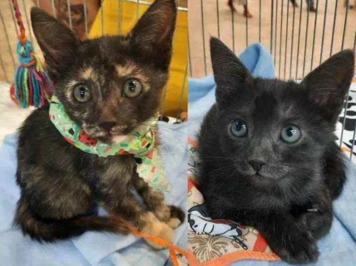 A Kika (escaminha) e a Konka (pretinha com pelos brancos) são duas irmãs grudinhas de 2 meses! Elas são doces, brincalhonas e serelepes! Já estão vermifugadas.