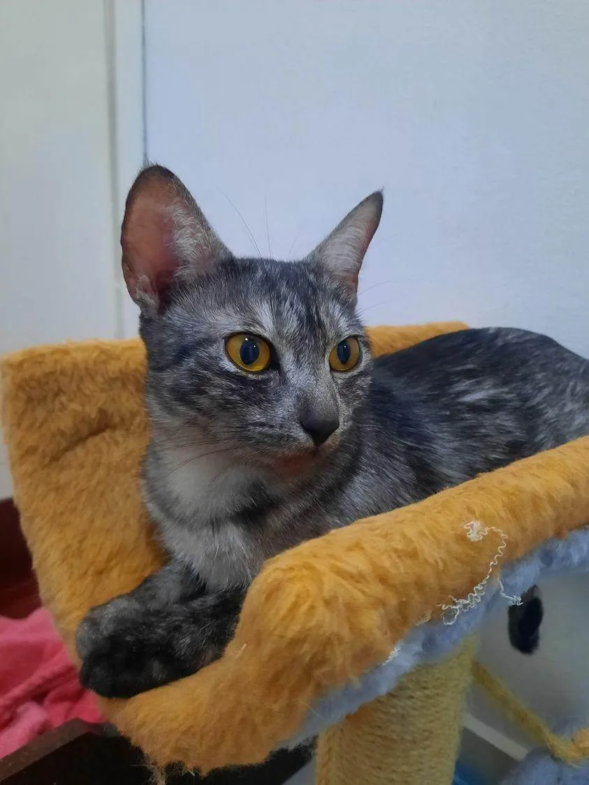 Oi, me chamo Madalena! Sou uma gatinha falante, dócil e carinhosa, de aprox. 1 ano.Fui resgatada quando estava grávida e, dois dias depois, tive os filhotes em segurança! Eles já foram doados e agora é a minha vez!