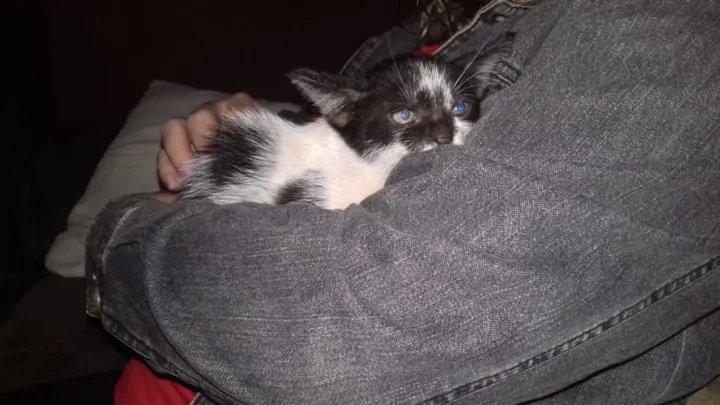 Resgatei essa gatinha próximo a minha casa, infelizmente não posso ficar com ela pois tenho cachorro e moro em apartamento pequeno. Ela já esta comendo ração e fazendo as necessidades na areia